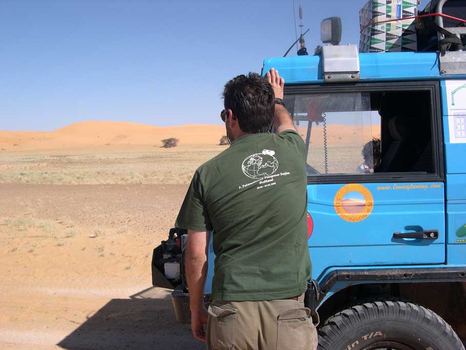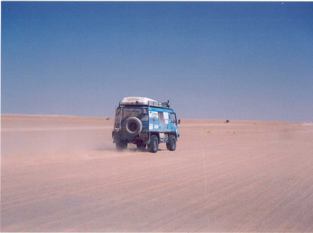 El cambio de cuatro relaciones ZF, funcionaba de maravilla. Para la concepción q tenia el vehiculo, vehiculo plenamente operativo en barro, roca y terrenos de montañosos, pero en arena suelta, como es el desierto, se mostraba francamente ineficaz. Esta fue la verdadera razón junto a la elevada temperatura de cabina, lo que me animó a su venta. La caja de cambios automática, debido al enorme y prolongado esfuerzo en arena se sobrecalentaba, a pesar de llevar su correspondiente radiador, y esto le hacia perder mucha eficacia. Así, combinando la perdida de rendimiento del cambio y sus 105 cv, más su elevado peso, en la arena se podía defender pero no por prolongadas jornadas como ocurriría en nuestro viaje a Mauritania. Pero esa es ya otra cuestión.