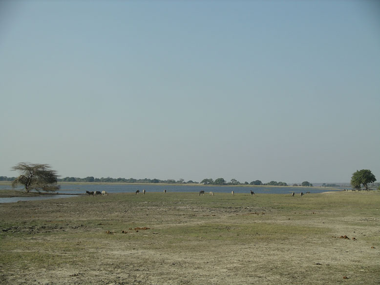 Hicimos noche en el campamento Liyanti despues de agotador y aburrido día para a la mañana siguiente seguir por otra odiosa pista hasta por fin llegar hasta lo que verdaderamente se convierte en el paraíso del parque, que es toda la ribera del río Okavango. No he visto tanta variedad de fauna junta en mi vida, vimos de todo menos leones y rinos, que este último es el que nos falta. Miles de cebras, elefantes, cocodrilos, bufalos, jirafas.....es como el Edén a tus pies. Sobra decir que os centréis en esta parte del parque y os olvidéis de la zona de Lynyanti, lo vais a ganar en salud. La visita finaliza el la ciudad de Kasane, lugar para descansar y aprovisionerte antes de partir cruzando el Zambece a su vecina Zambia.