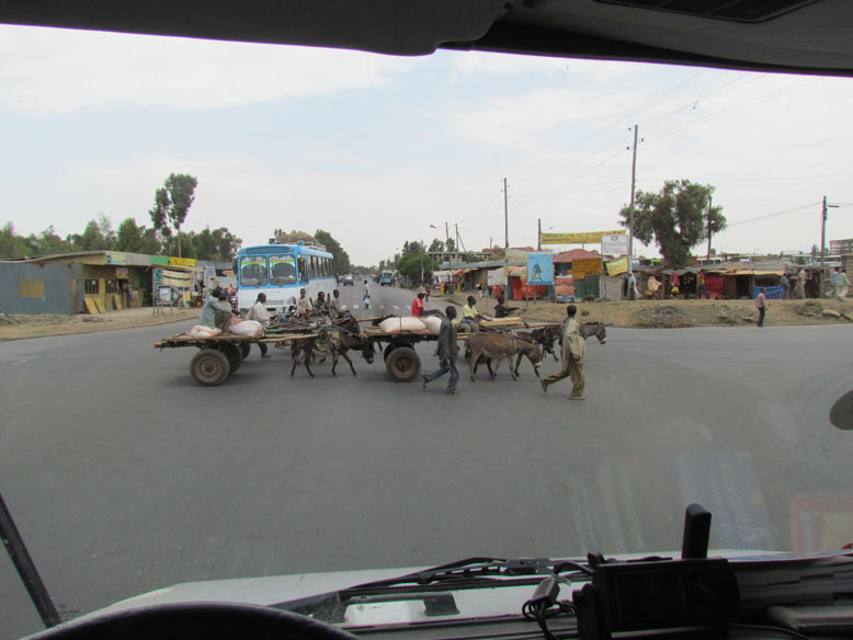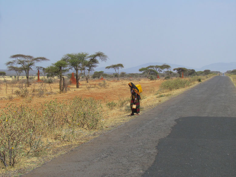 Etiopía es un país con mucha elevación, estas practicamente todo el viaje entre los 2000 y 3000 metros. A estas alturas, aunque no son extremas, el sol calienta de lo lindo, por eso es frecuente ver al etiope, caminando por la carretera con su paraguas sombrilla y su pañuelo en la cabeza. Tengo que decir que la conducción es peligrosa en Etiopía. Por favor evitar a toda costa la conducción nocturna. Si ya por el día es una auténtica lotería no llevarse por delante los cientos de burros, carromatos, camiones, cabras, niños jugando al fútbol en la calzada y la marea de transeúntes que viven en las carretera , imaginate por la noche.