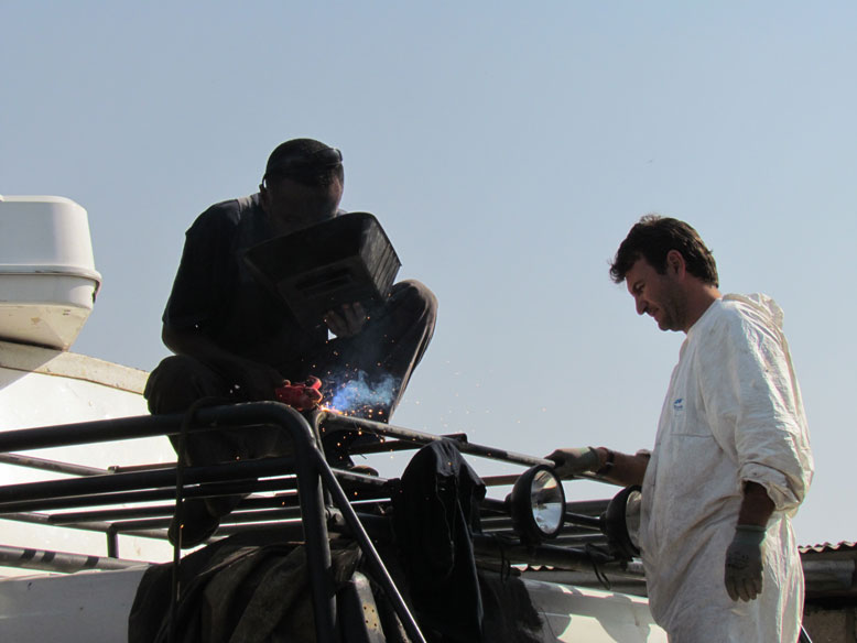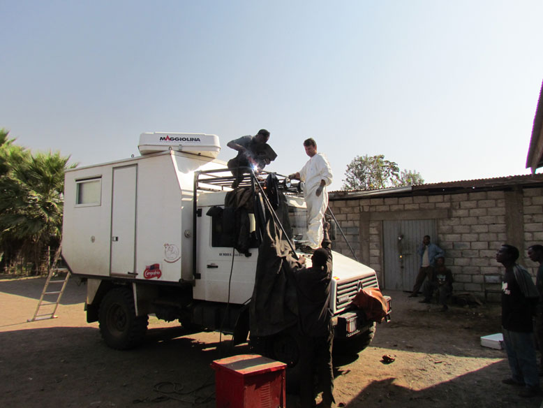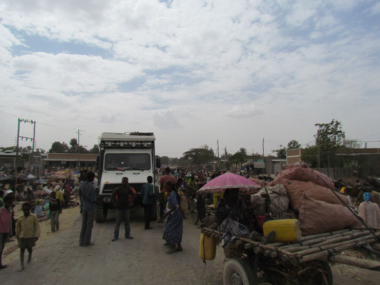 Nada mas de entrar en el país tuvimos que hacer un alto en el camino, en la ciudad de Awasa, para cambiar dinero y soldar la baca del camión. Rompimos un par de barras donde apoya la tienda de techo en la infernal ruta a Moyale. Cual fué mi sorpresa al ver que todas las dependientas del las tiendas de recambios eran chicas y con buena presencia como se aprecia en la foto. Que cosas tiene esto de África.