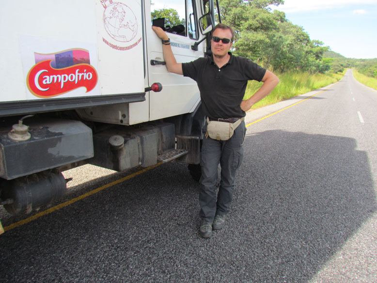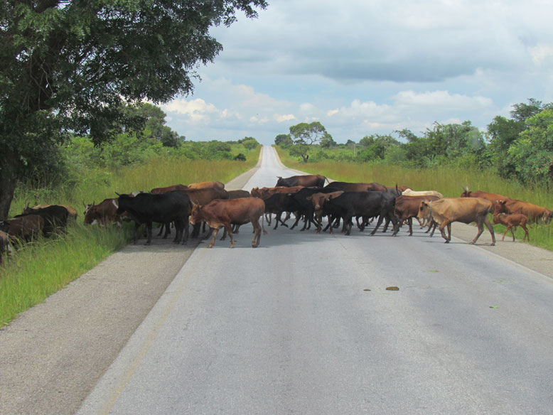Enfilamos la caretera T1 hasta la confluencia con la T2 que nos lleva por el oeste hasta Chirindu, en la frontera con Zimbabwe, para tomar una pista al norte direccion en PN. del bajo Zambeze. La carretera es de asfalto muy bueno, con un trafico casi nulo de coches, pero si de grandes camiones pesados. Es un terrerno muy montañoso de continuos puertos, aunque cortos, bastante pronunciados. En los casi 450 kilometros de viaje no hemos visto un solo contril policial, a diferencia de la aberración de su vecina Zimbabwe. La gente es amigable y los niños no paran de saludarte con las manos al pasar. El paisaje es tremendamente verde, me recuerda al viaje que hice a Colombia por la Panamericana. No se si este paisaje se volvera amarillo y triste en la epoca de sequia, pero desde luego este pais está pidiendo a gritos una fuerte inversión extrangera que lo saque de la miseria y del l subdesarrolo en la que esta sumergida. Tiene tanto terreno por cultiva,r por aprovechar que da pena que la gente viva así.