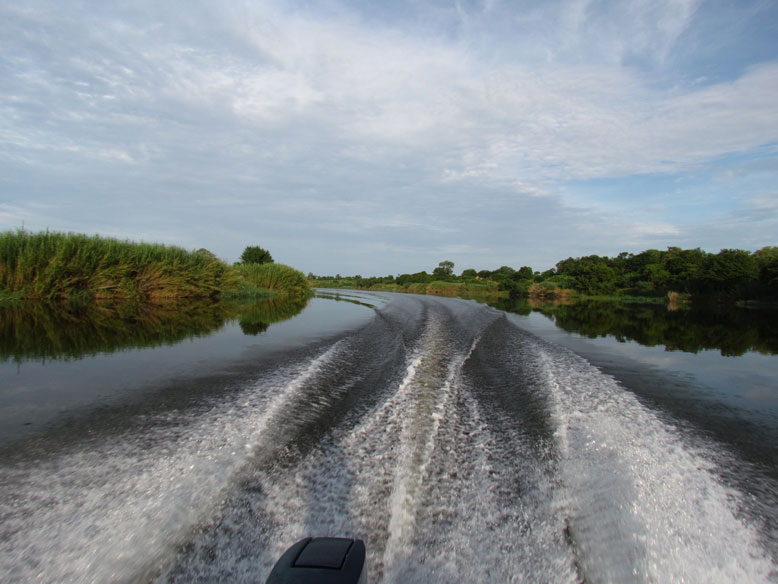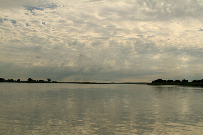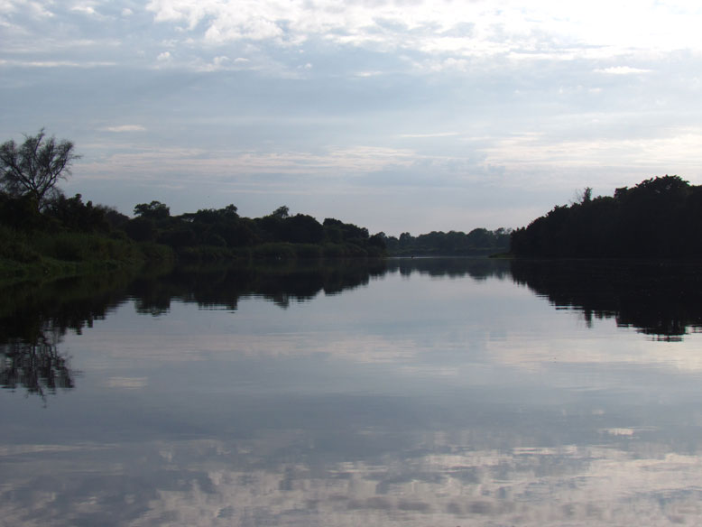 Al llegar a localidad de Chirundu, que por cierto no hay combustible, más que en el mercado negro, cosa muy poco aconsejable si teneis aprecio a vuestra bomba inyectora, tomamos una pista en estado lamentable hacia el PN del bajo Zambeze. Decidimos pasar la noche en las puertas el parque, en el Gwabi Lodge. Este parque esta ahora de moda en la tempora seca pues donde viene mucho norte americano a pescar. En nuestra epoca de lluvias, el turismo es casi nulo pues las pistas se convierten impracticabes. Pues según esto, a la mañana siguiente, viendo la previsión de lluvia y la que se venía encima, decidimos hacer la visita en motoras desde el lodge. La verda es la mejor forma de ver el parque. Avistamos cientos de hipòs, cocodrilos y elefantes, disfrutando al máximo de las aguas del rio Zambeze. Por cierto para acceder al parque hay que cruzar el río, y siempre hay algún espabilado como en todos los sitios que quiere hacer su Agosto con nosotros. Vamos que nos pedía 35US$ por cruzar el rio. Pues ahí se quedó, porque no aceptamos el chantaje...y desde luego que acertamos, ese mismo día cayo una de pelicula, que nos hubiese impedido ver el parque con el Uni.