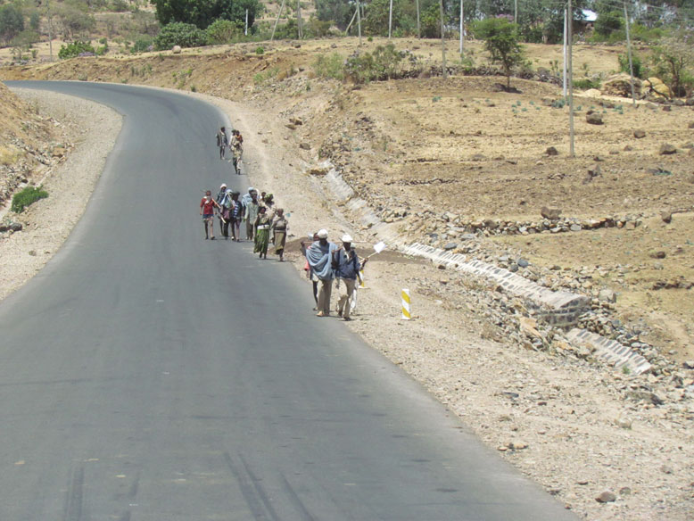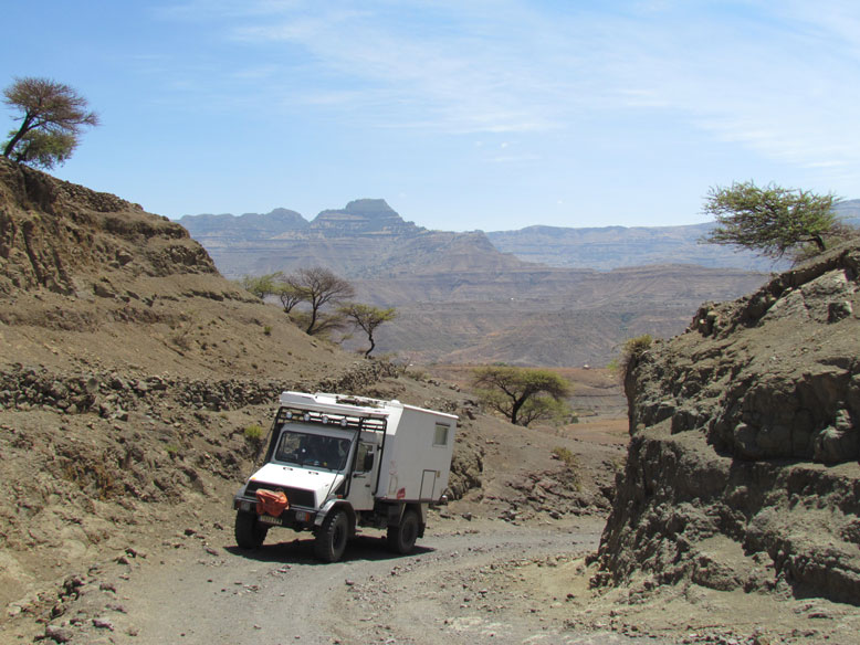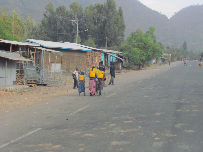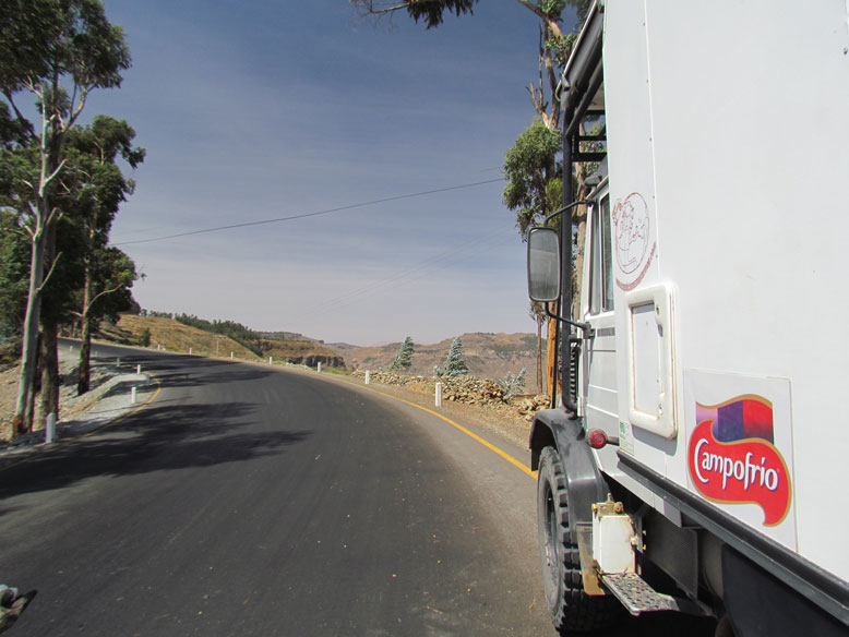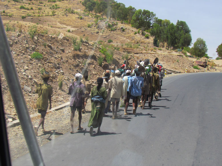 Ya es hora de dejar Adiss. Ciudad que nos ha dejado un buen sabor de boca y partir por su carretera 1, dirección norte hasta la población de Woldilla. Empezamos el ascenso nada mas abandonar la capital. Subimos sin cesar hasta alcanzar cotas superiores a 3000 metros. Increíbles vistas, masas arbóreas con explotación forestal y tierras altas de cereal y pasto ganadero. Es un tramo del viaje tranquilo, agradable, con buen asfalto y poco trafico, excepto el ya mencionado ir y venir de animales y gente por la calzada. También ya vas percibiendo el cambio de rasgos del etiope de esta zona norte del país. Menos atractivo y con más influencia musulmana que en el centro y sur.