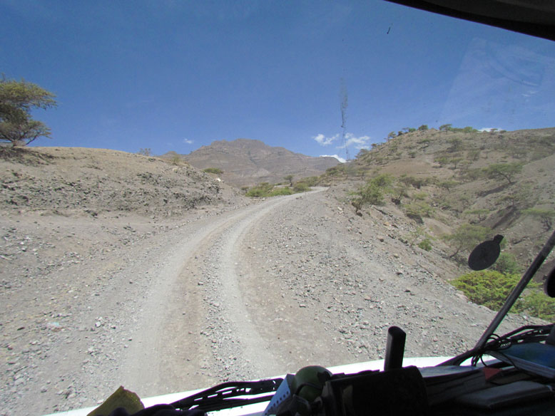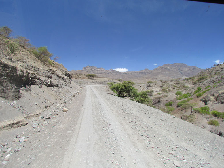 Al llegar a Woldiya tomamos la "chinesse road" dirección oeste. Nuevamente siguen los chinos construyendo infraestructuras por áfrica. Pasados 60 kilometros , es hora de dejar el asfalto y dirigirse en dirección norte por la espectacular, alpina y árida pista de montaña que te lleva hasta Lalibela. Pista en buen estado en general, pero muy lenta , por sus fuertes pendientes, pasos de aldeas y curvas muy cerradas. No hay otro acceso a Lalibela que no sea este, a no ser que vayas a su aeropuerto por avión, que es lo que hace la mayoría del turismo. La pista te muestra unos paisajes increíbles. Me traen a la memoria imagenes vistas en cine o en los informativos de televisión sobre las áridas zonas montañosas de Afganistan. Bien merece la pena las seis horas que te lleva completar el camino a Lalibela solo por disfrutar de estos paisajes.