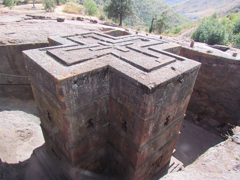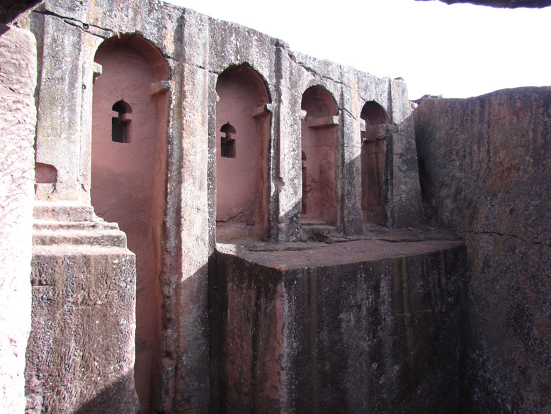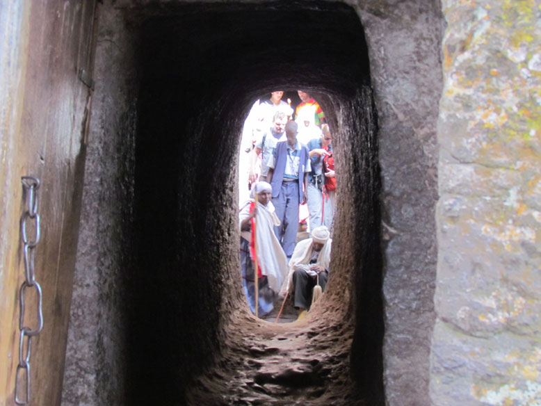 Vas de un complejo de iglesias a otro, se comunican por túneles, y a cada cual mas interesante. Pero la que se lleva la palma es la iglesia de Bet Giyorgies. De cruz griega, es la mas visitada de todas. Uno de los iconos de Etiopia. Dicen que dentro de este conjunto de templos se encuentra la tumba de Adan. Ahí va eso para los que tiene fe.