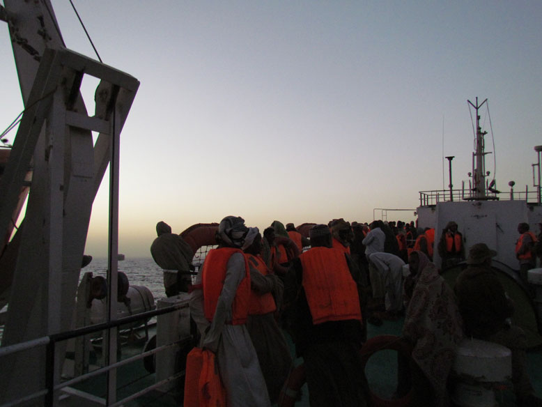 Despues de una maniobra de aproximación a nuestro buque, saltamos al otro de rescate. Que follón!!! Nuevamente gritos , empujones, y caos. Eso para pasar de un barco a otro, imaginaros si hubiésemos tenido que hacer una evacuación de emergencia. Acabamos a tiros, de eso estoy seguro. Han pasado 12 horas desde el accidente hasta nuestro rescate y ya navegamos rumbo de nuevo a Aswan.
