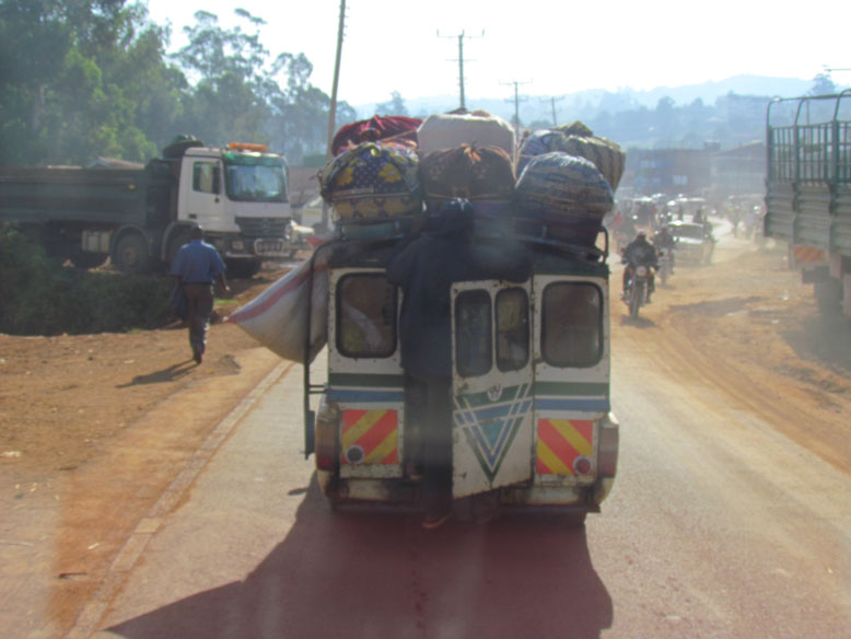 Para llegar a Nairobi, lo mejor es tomar la B3 y luego la A104. Nairobi esta a 2000 mts sobre el nivel del mar, lo que llaman en las tierras altas. La B3 que asciende por toda la montaña es una locura. Es lo más parecido a la panamericana en Colombia. Precipicios, camiones averiados, adelantamientos alocados, golpes....pero tiene una magnifica vista de todo el valle del Rift.