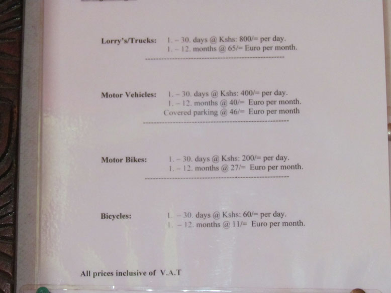 Ya se nos hizo de noche en la aduana, y pudimos comprobar que circular por Kenia de noche, es una auténtica temeridad. Ya no es como en los otros países que hemos visitado, que el trafico es escaso y por la noche nulo. No!!!, en Kenia el trafico es considerable y por la noche es una auténtica jincana poder esquivar a los cientos de transeúntes por la calzada o los numerosos vehículos sin luces posteriores. Al final pernoctamos en un hotel de citas muy próximo a la frontera. El impresentable del dueño, despues de decirnos que no nos iba a cobrar nada, que éramos seres humanos y que estábamos aquí para ayudarnos los unos a los otros, a la mañana siguiente nos cobró 15US$ por la pernocta. Pondré luego las coordenadas por si alguno se le echa la noche en la frontera y necesita un lugar donde pernoctar, pero ojo con el dueño, es el mismísimo Barrabas.
