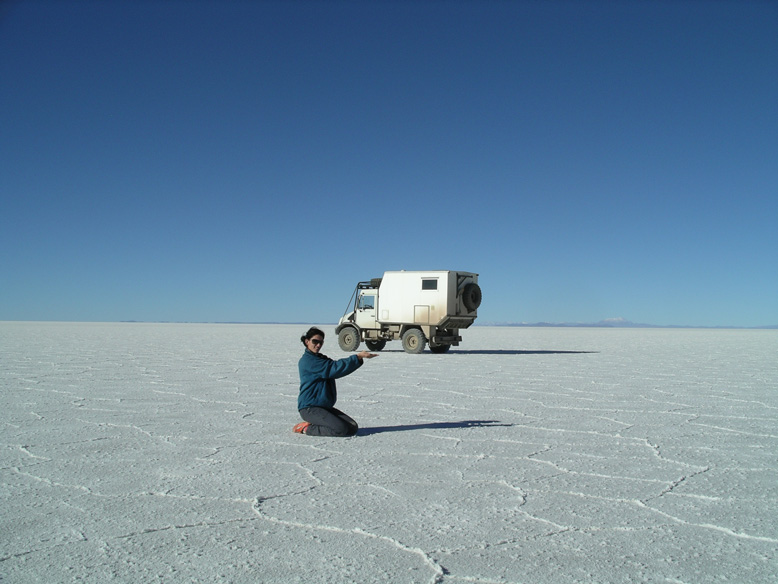 Impresionante! Es de lo mejor que he visto hasta ahora en el viaje. Un gran mar que se secó, ha dejado una gran explanada de sal, sin una sola protuverancia en el terreno. Un lugar que te hace sentir que vas en un vuelo rasante por el mismo océano. Desde luego que ha merecido la pena recorrer miles de kilometros para ver esto. A mí me ha impresionado de una manera especial, espero que a vosotros también lo haga. Animaros, no os decepcionará.