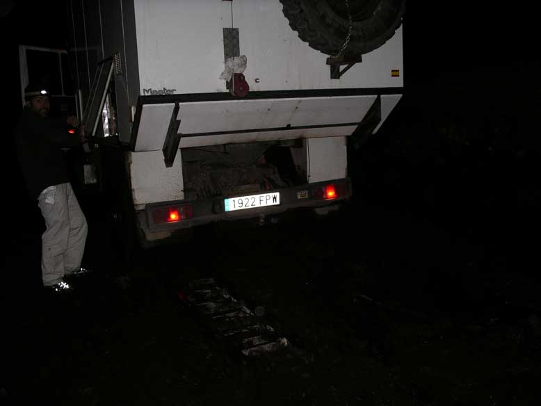 Nos echamos a dormir, gotados y en una postura un tanto incomoda, pues el camión estaba hundido del eje trasero derecho, dando una inclinación a la cama bastante incomoda.