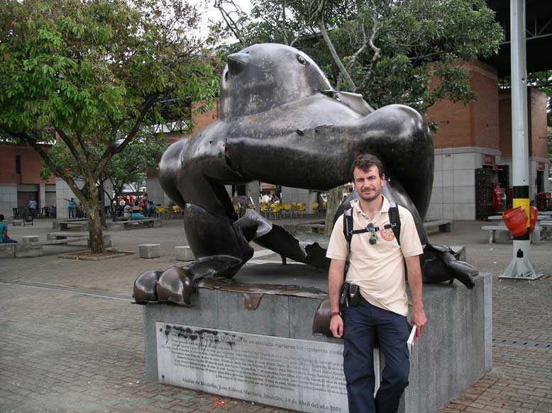 Desde la muerte del gran capo del narcotráfico asentado en Medellín, llamado y conocido por todos como Pablo Escobar, la ciudad esta poco a poco recuperando su normalidad. Los militares, la policía y la vigilancia privada tienen tomada la ciudad por completo, para que puedas pasear y disfrutar de su encanto de una manera tanquila. Medellín tiene su casco antiguo o ciudad vieja, que se puede resumir como "el constante mercado". Infinidad de tiendas, puestos callejeros, vendedores ambulantes plagan todo su casco viejo . Colorido, bullicio, alargaravía..ese es el centro de Medellín...una locura!!! pero dentro de este caos encontramos la "plazoleta de las estatuas", donde el genial escultor Botero ha dejado parte de su legado. Asombra despues de tanta marabunta, que de repente a pocos metros, encuentras esta plaza, limpia, ordenada y con semejantes maravillas escultoricas. Desde la misma plaza tienes acceso al fabulo museo de Antioquia y el Palacio de la Cultura de Rafael Uribe. Además de Botero tenemos las obras de Rodrigo Arenas Betancour. Su imponente escultura de metal retorcido, llamada "el monumento a la raza" es para dejarte la boca abierta. Solo por ver esa maravilla merece la pena la visita a Medellín. También esta "el monumento a la vida" de Betancour, un poquito más retirado pero también espectacular.